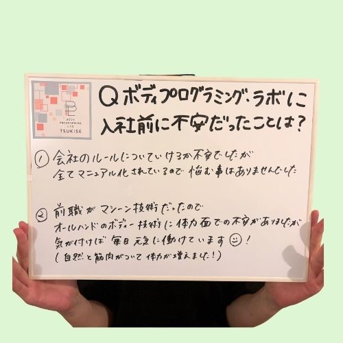 - 安心して施術に集中できる環境を、会社が用意しています。