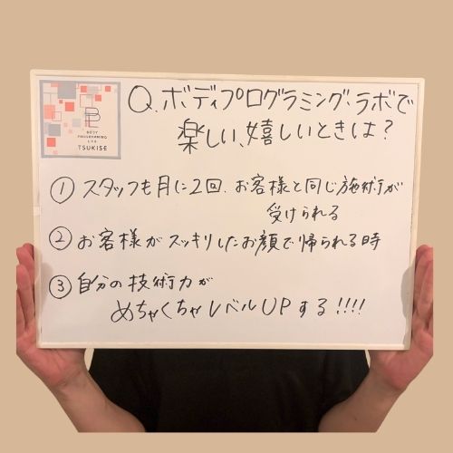 - 施術者が不安定にならないように、仕組みで管理しています。