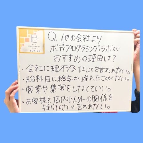 - 真面目に練習を重ねると、指名も自然に増え、ボーナスも増える職場です。